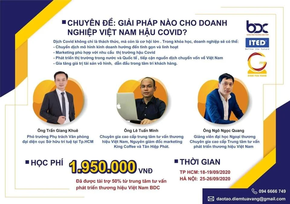 * Học phí tổ chức 3.900.000/ người >>> BDC tài trợ cho bạn 50%, bạn chỉ cần đóng 1.950.000đ/ người.