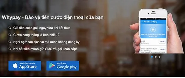 Whypay giúp quản lý và tiết kiệm tối đa cước viễn thông, tính năng nổi bật: thống kê cước gọi và dữ liệu 3G, phát hiện dịch vụ VAS ngầm, cảnh báo khi gọi tới đầu số dịch vụ, tư vấn gói cước rẻ nhất,… Whypay là app duy nhất ở Việt nam có thể tính cước thời gian thực, báo tiền cước ngay sau mỗi cuộc gọi. Ngoài ra, người sử dụng có thể ứng tiền, thanh toán cước và các dịch vụ khác ngay trên ứng dụng. Whypay đạt giải Nhân tài Đất Việt với hơn 1 triệu lượt tải