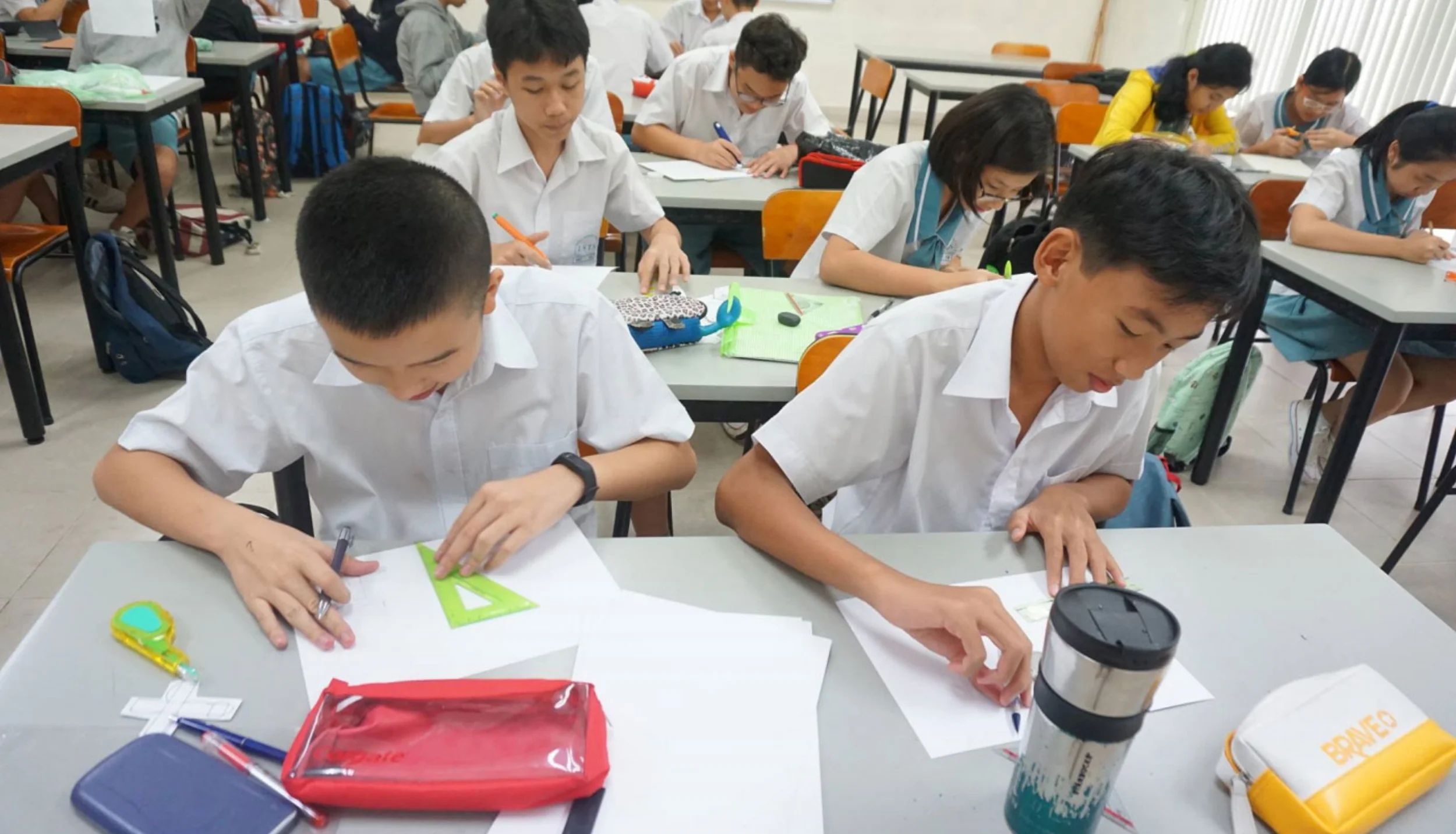 Phương pháp học tích hợp môn toán hình học và môn tiếng Anh tại trường Đinh Thiện Lý.
