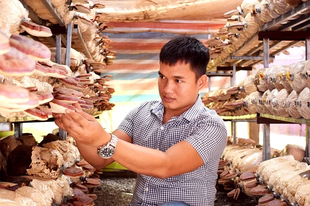 Hiện nay, với 10 loại nấm khác nhau, mỗi ngày trang trại của anh làm ra hơn 6.000 phôi nấm, tạo công ăn việc làm cho 10 lao động địa phương với mức lương trên 6 triệu đồng/tháng