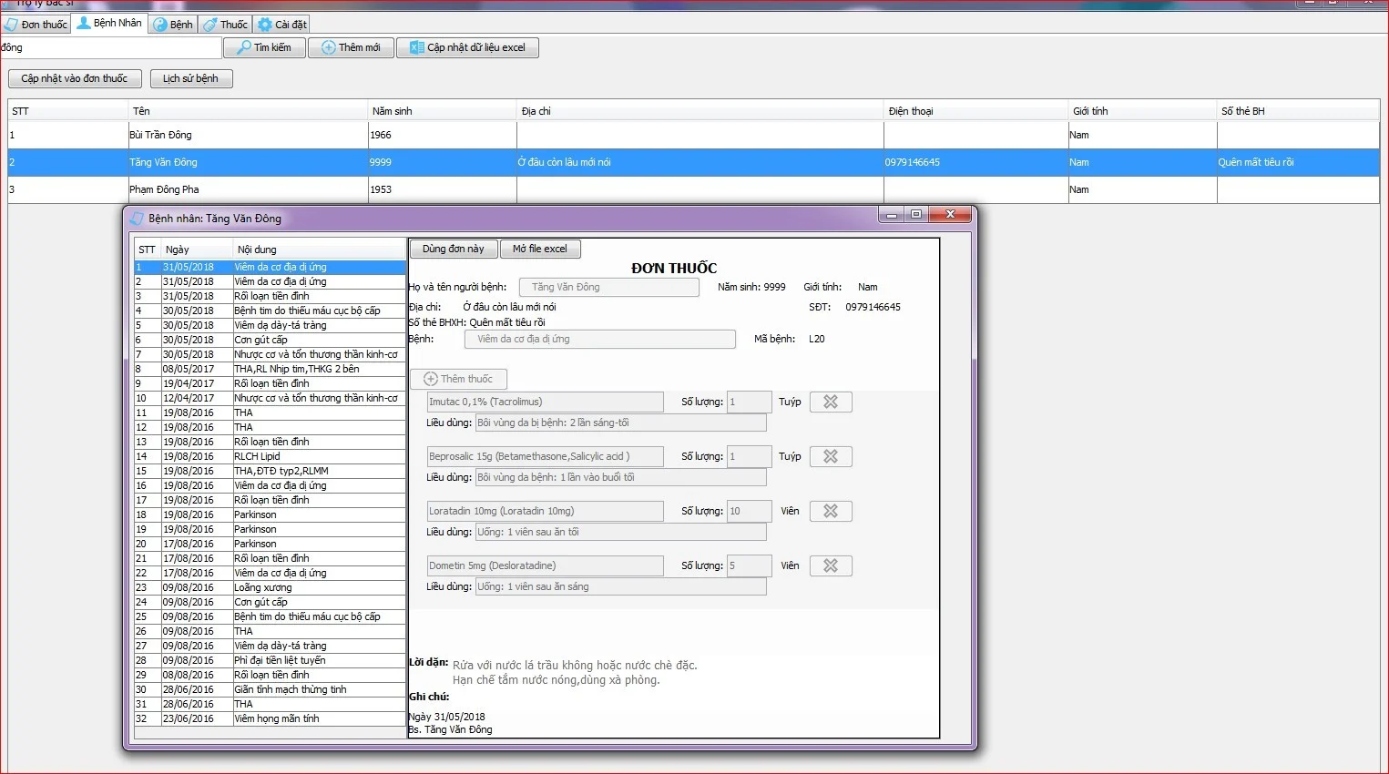 Bác sĩ Tăng Văn Đông tại bệnh viện Việt - Pháp đã tự viết ra phần mềm kê và lưu đơn thuốc, giúp các bác sĩ dễ dàng trong việc kê toa lần tiếp.