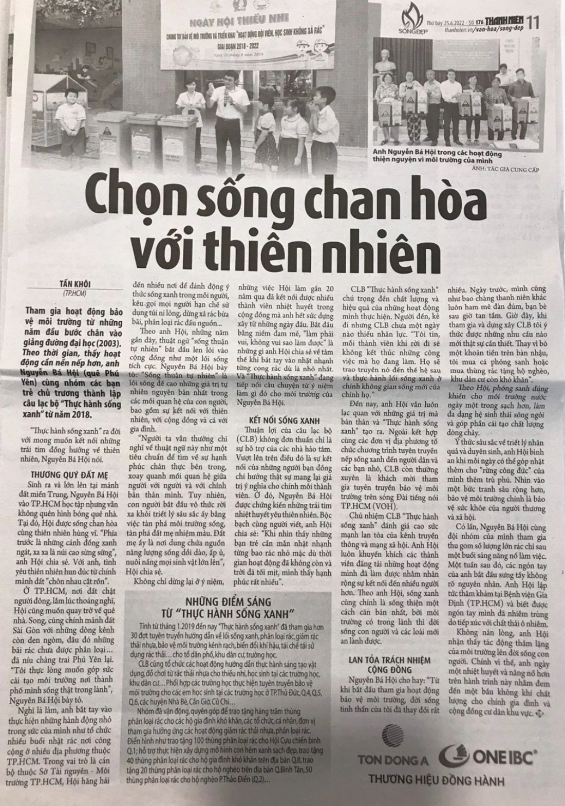 CLB Thực hành Sống xanh (Green Living Club là nơi kết nối những người yêu môi trường cùng nhau xây dựng và thực hiện lối sống xanh, sống thân thiện môi trường đề góp phần giảm thiểu những tác hại do chất thải từ các sinh hoạt hằng ngày gây ra. CLB tham gia và kết nối các hoạt động bảo vệ môi trường do các cơ quan, đơn vị, doanh nghiệp, tổ chức phi chính phủ (NGO), các câu lạc bộ, đội nhóm … tổ chức trên địa bàn thành phố Hồ Chí Minh nói riêng và cả nước nói chung. Hoạt động của nhóm góp phần tạo ra các hiệu quả truyền thông, giúp lan tỏa thông điệp bảo vệ môi trường đến cộng đồng dân cư. Nhóm đã vận động, viên góp để trao tặng hàng trăm thùng phân loại rác cho các hộ gia đình khó khăn, cho các tổ chức, cá nhân, đơn vị tham gia hưởng ứng các hoạt động giảm rác thải nhựa, phân loại rác, giảm rác thải nhựa trị giá hơn 50.000.000 đồng. Điển hình như trao tặng 100 thùng phân loại rác cho Hội cựu chiến binh quận 1, tp HCM hỗ trợ thực hiện xây dựng mô hình con hẻm xanh sạch đẹp, trao tặng 40 thùng phân loại rác cho hộ gia đình khó khăn trên địa bàn Quận 8 (thông qua Phòng Tài nguyên và Môi trường), trao tặng 20 thùng phân loại rác cho hộ nghèo trên địa bàn quận Bình Tân (thông qua Đoàn Sở Tài nguyên và Môi trường Tp. HCM), trao tặng 50 thùng phân loại rác cho hộ nghèo phường Thảo Điền (quận 2), trao tặng thùng phân loại rác cho trường Mần non Hoa Lư (Quận 1), phối hợp chữ thập đỏ Quận Thủ Đức trao tặng 300 thùng phân loại rác cho hộ khó khăn trên địa bàn, trao tặng 20 thùng phân loại rác cho hộ nghèo trên địa bàn xã Tân Quý Tây (Bình Chánh),… các hoạt động của nhóm góp phần chung tay giảm chi phí trong các động tuyên truyền bảo vệ môi trường của các tổ chức đồ thể, cơ quan quản lý nhà nước.