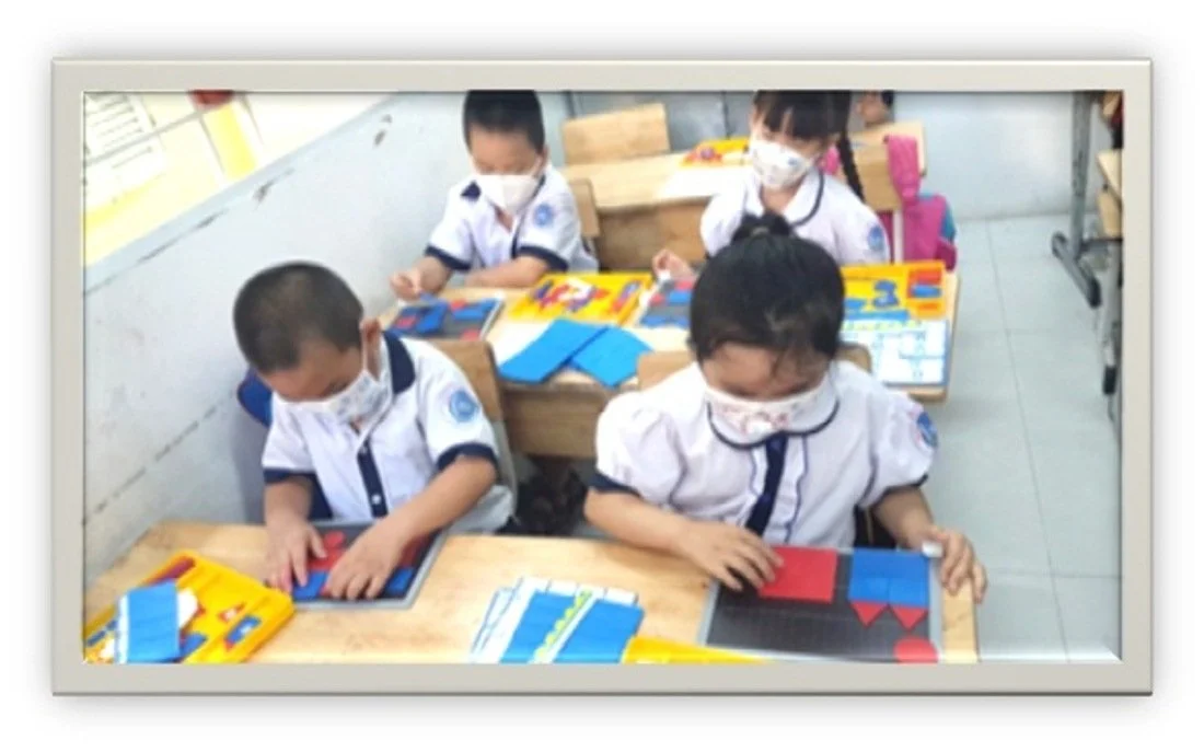 - Giáo viên sử dụng mô hình biểu diễn toán học (gồm các hình tam giác, hình vuông, hình tròn,…) cho học sinh nhận dạng và gọi tên các hình.