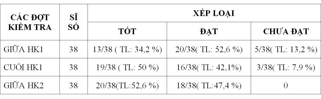 Để minh chứng cho sự tiến bộ của các em, sau đây là kết quả khảo sát của các em trong từng đợt của môn Tiếng Việt trong năm học: 2021 - 2022 như sau: