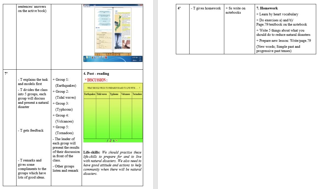 + Specific capacity: Give own opinions about how to reduce natural disasters