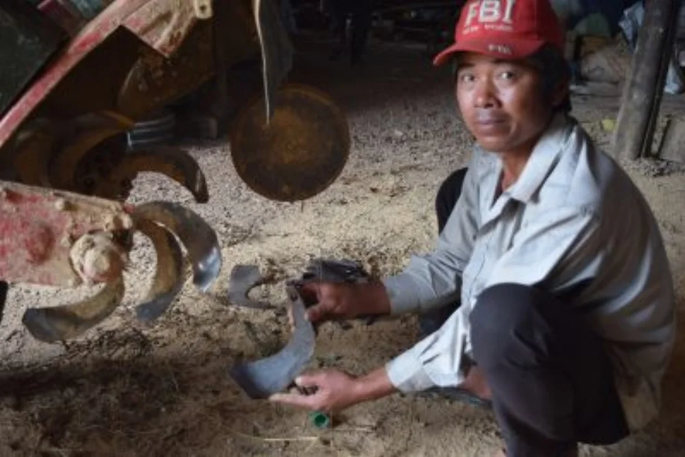 “Sau nhiều lần làm hoài không được, tôi mới suy nghĩ, mình lái máy chạy tới không đắp được bồn, giờ thử chuyển số cho chạy lui xem sao. Tôi mới lắp toàn bộ dàn răng hướng về phía bên trái rồi cho máy chạy lui thì dàn răng đã xới được đất dồn đắp thành bồn.