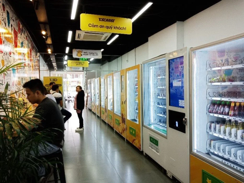 Cửa hàng gồm nhiều máy bán hàng tự động khác nhau. Hàng hóa được đặt trong các máy bán, với nhiệt độ điều chỉnh phù hợp.