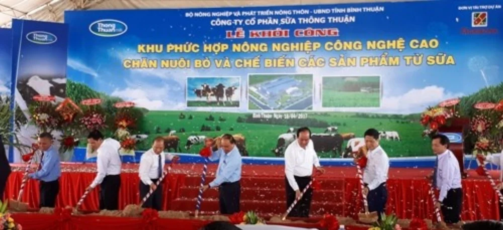 Thủ tướng Chính phủ Nguyễn Xuân Phúc vừa tham dự lễ khởi công Khu phức hợp nông nghiệp công nghệ cao chăn nuôi bò và chế biến các sản phẩm từ sữa với tổng số vốn lên tới 3.930 tỷ đồng tại huyện Bắc Bình tỉnh Bình Thuận.