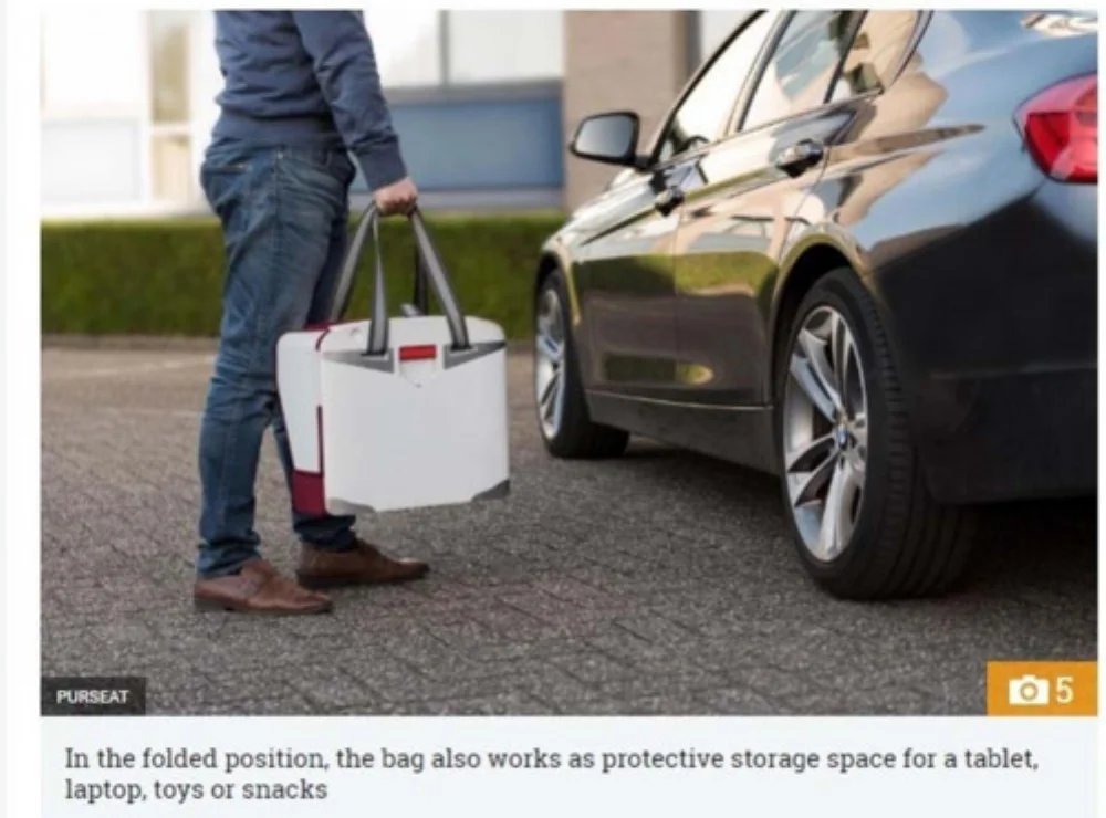 Theo The Sun, Purseat chính là chiếc ghế ngồi trên ô tô dành cho trẻ nhỏ nhưng lại có thể “hô biến” thành một chiếc giường nằm trên ô tô và chiếc túi đựng hành lý rất tiện lợi.