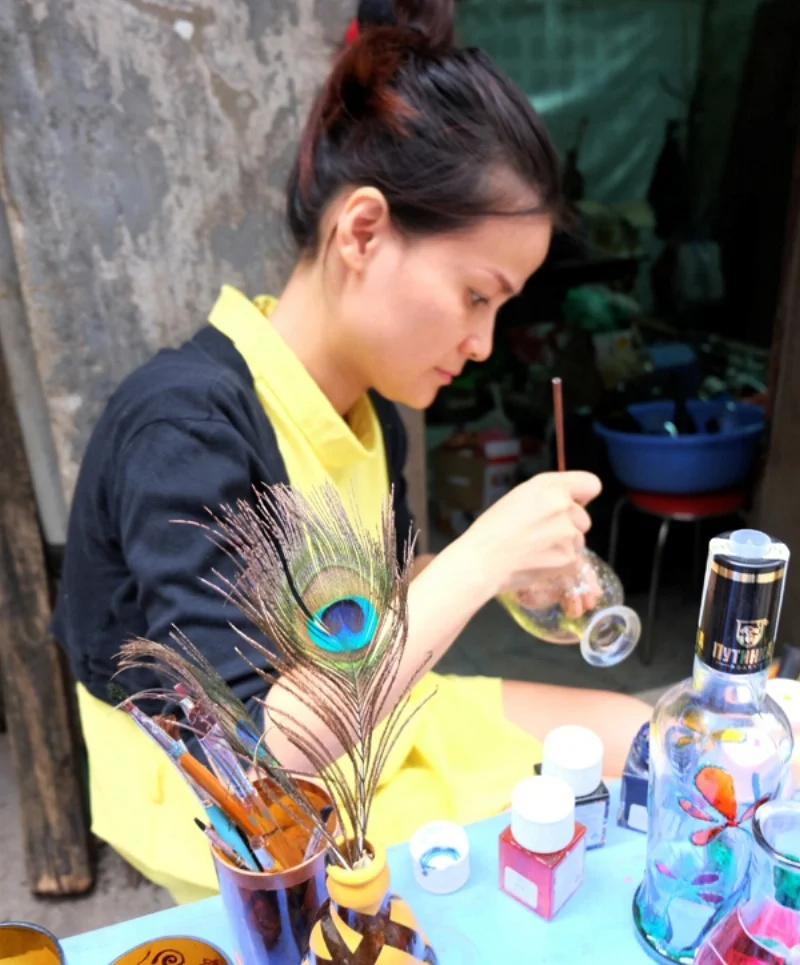 Theo chị Thúy, những vỏ chai vứt đi tưởng như không còn giá trị nhưng dưới bàn tay người thợ, trải qua nhiều công đoạn chế tác lại trở thành những sản phẩm mang tính nghệ thuật, được trưng bày trang trọng trong những công trình kiến trúc đẹp, không gian sang trọng.