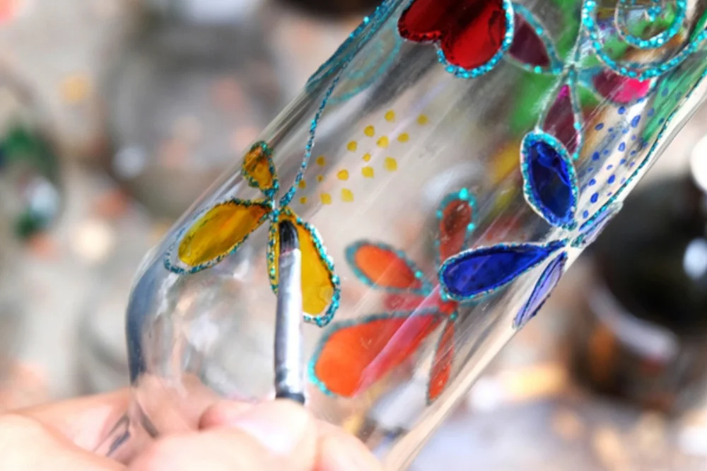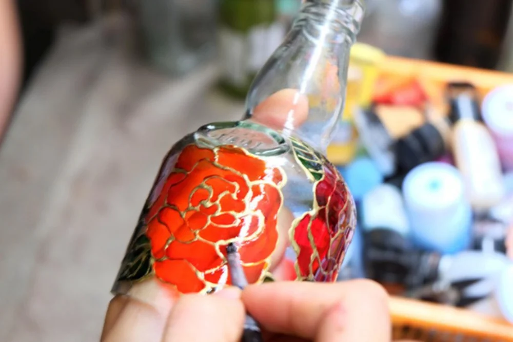 Anh chị phải đặt mua màu chuyên dụng cho kính để khi vẽ màu sắc cũng như họa tiết không bị phai và nhòe.