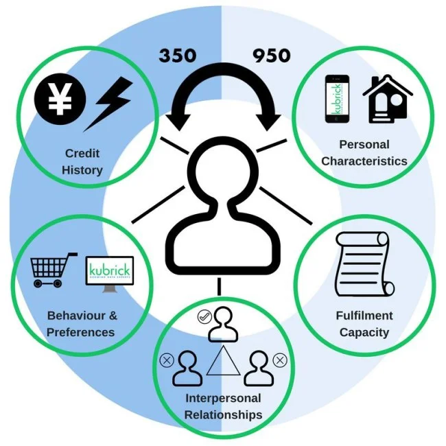 Mô hình đánh giá độ tin cậy của 1 người của Sesame Credit. Hình minh hoạ: Kubrick Group