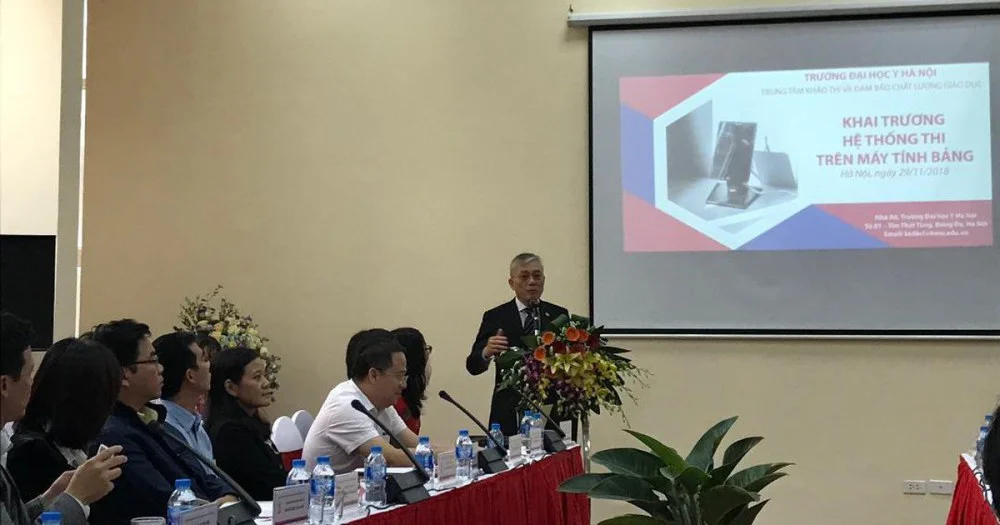 Trường đại học Y Hà Nội vừa khánh thành hệ thống thi trên máy tính bảng. Kể từ kỳ thi tháng 12-2018, sinh viên y Hà Nội sẽ thi trắc nghiệm cả lý thuyết và thực hành trên máy tính bảng, thông qua ngân hàng câu hỏi, các video.