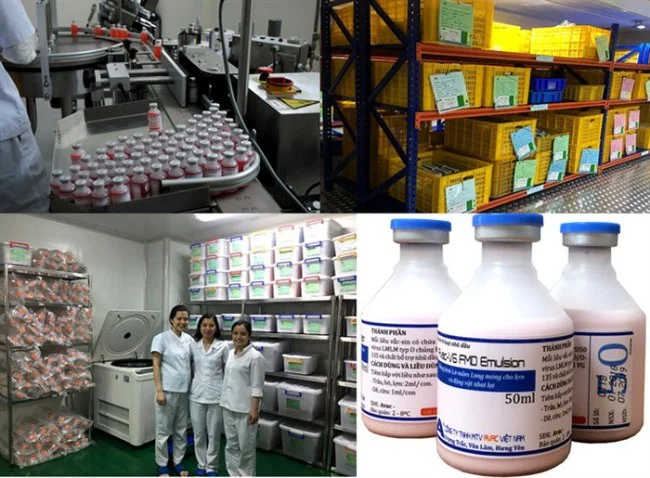 Dây chuyền, nơi đóng gói và bảo quản vacxin phòng bệnh LMLM AVAC-V6 FMD Emulsion type O của Cty RTD