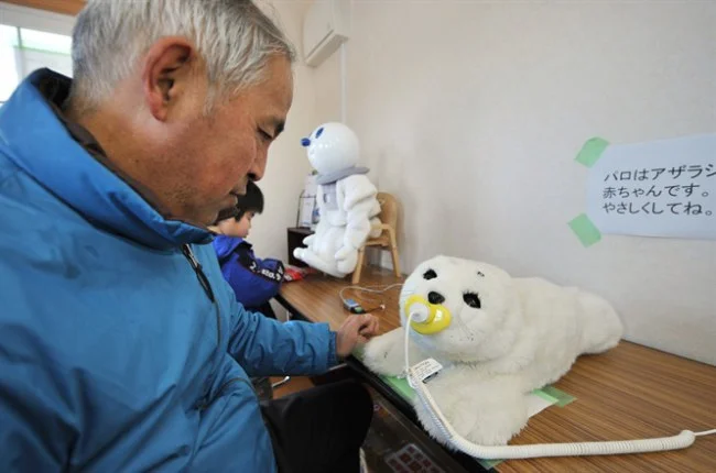 Trong khi Paro, chú robot dễ thương trong hình dáng của một chú hải cẩu con với bộ lông mềm mịn, đang nũng nịu "khóc nhè" với một cụ bà, thì robot Pepper với giọng nói trẻ con trong trẻo đang bắt nhịp cho một nhóm các cụ ông, cụ bà tập thể dục.