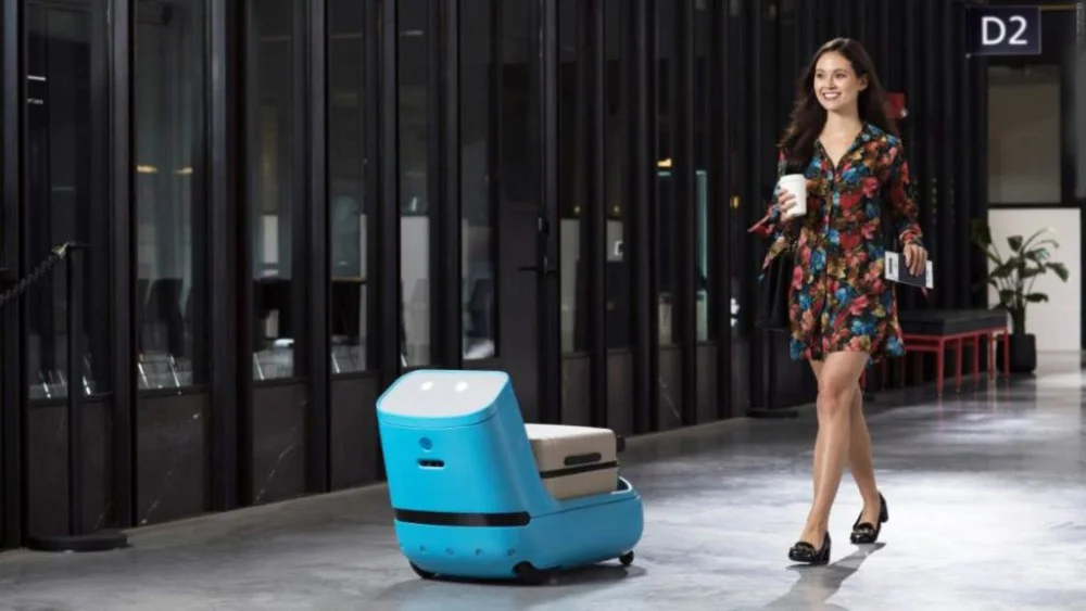Để giúp hành khách bớt vất vả trong hành trình từ cổng an ninh tới cổng khởi hành, Hãng hàng không Hoàng gia Hà Lan KLM đã sử dụng tới những robot màu xanh nhỏ xinh mang tên Care-E.