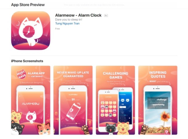 Chỉ sau 2 ngày ra mắt, ứng dụng báo thức độc đáo có tên Alarmeow của Nguyễn Trần Tùng và các cộng sự đã đứng vị trí 161 toàn cầu hạng mục Lifestyle của App Store với nhiều đánh giá 5 sao.
