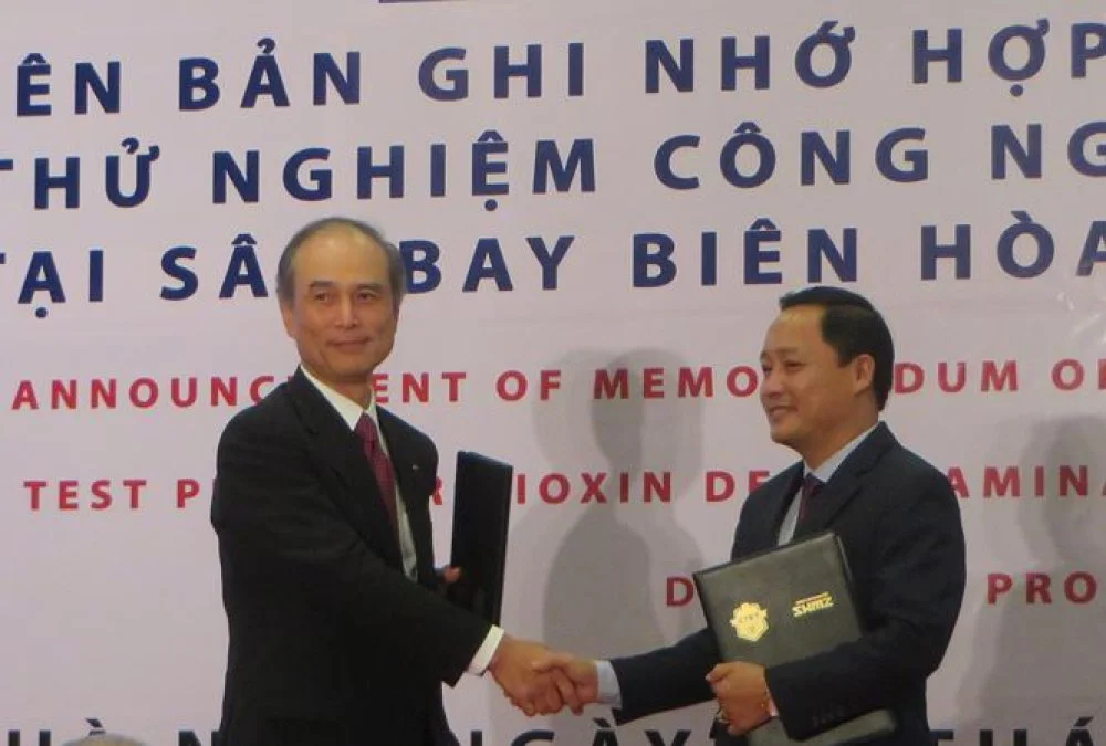 Chiều 4/9, tại Hà Nội, diễn ra lễ công bố Biên bản ghi nhớ hợp tác và Kế hoạch thử nghiệm công nghệ xử lý dioxin tại sân bay Biên Hòa, tỉnh Đồng Nai giữa Trung tâm Công nghệ xử lý môi trường (Bộ Tư lệnh Hóa học) và Tập đoàn Shimizu (Nhật Bản).