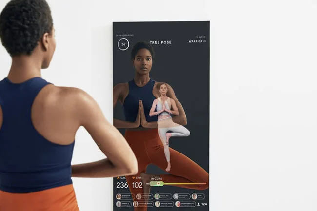 Chiếc gương thần kì có kích thước lớn, đi kèm camera và các cảm biến để theo dõi những bài tập thể dục, yoga của bạn. Ẩn bên dưới bề mặt phản chiếu là màn hình thể hiện thông tin bài tập, nhịp tim, số calo đã tiêu thụ và hình ảnh của hướng dẫn viên.