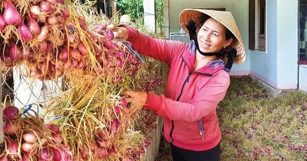 Cây hành tím bén duyên trên vùng đất cát Bình Hải (Bình Sơn) đã mang lại cho người dân nơi đây thu nhập từ 100 triệu đồng/hộ/năm. Ảnh minh họa. Nguồn: Báo Quảng Ngãi.