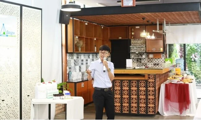 Ông Mai Võ Tuấn Anh, đại diện nhóm nghiên cứu chia sẻ về nano bạc ứng dụng trong gel rửa tay