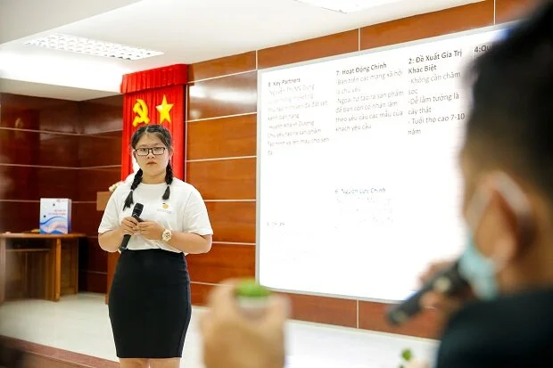 Lần lượt 9 đội thi đã có 10 phút thuyết trình và 15 phút phản biện trước Hội đồng thẩm định. Cuối cùng, với ưu thế nổi bật về sản phẩm thực tế cho đánh giá cảm quan tốt, chiến lược phát triển rõ ràng cùng lối trình bày thuyết phục, thí sinh Lê Thị Mỹ Dung và dự án “New Queen - Sen đá làm từ đất sét” đã xuất sắc giành ngôi Quán quân.